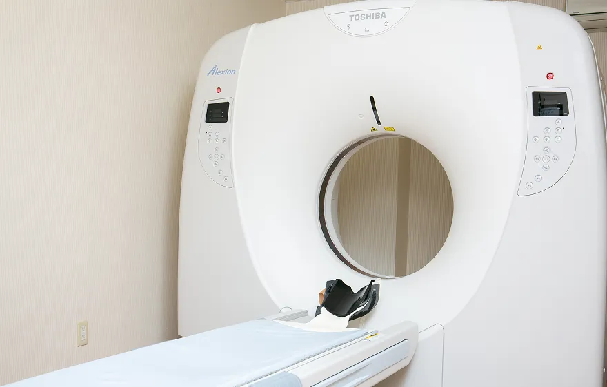 被ばく低減技術「AIDR-3D」を搭載した最新のCT装置により、従来より最大75%の被ばく低減を実現し、より安全で精度の高い検査を行うことができます。