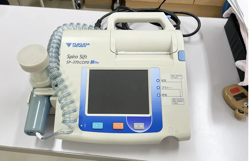肺年齢を測定できる電子スパイロメータ「スパイロシフト」を導入しています。