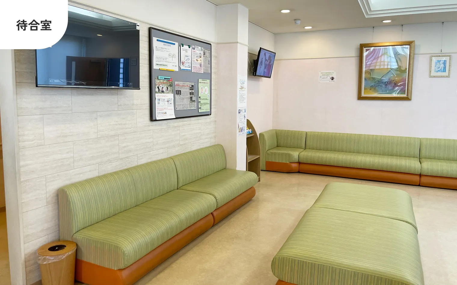 患者様がリラックスして受診できるよう、当院は緑と黄色を基調に、陽光と緑あふれる自然をイメージした空間をデザインしました。通院の不安を和らげ、心身ともに安らげる環境作りを大切にしています。