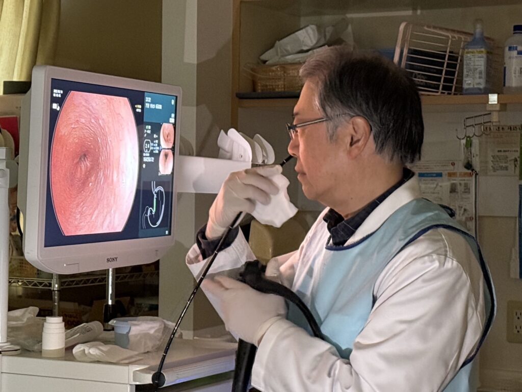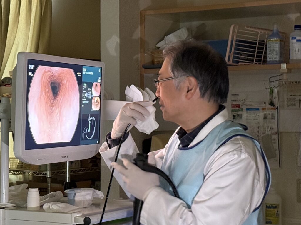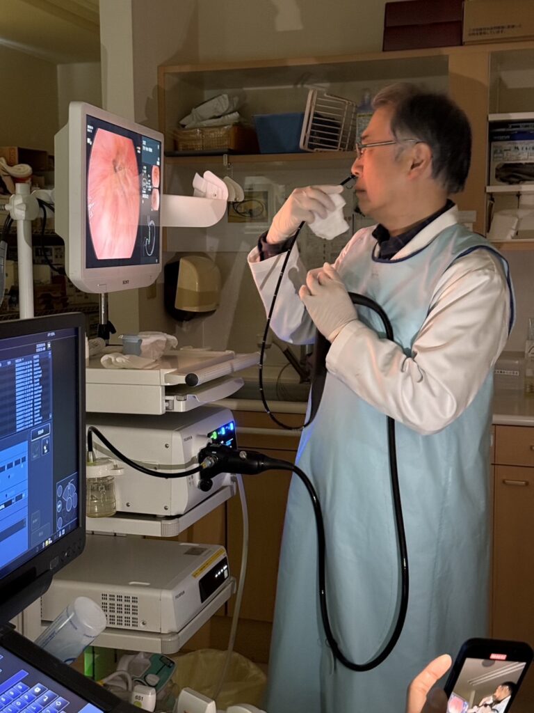 2026年3月19日、荒尾内科・耳鼻咽喉科の荒尾院長が、自分自身で胃カメラ検査を行いました。